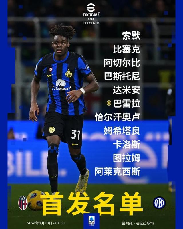 全场比赛结束,国际米兰客场1比0战胜博洛尼亚!