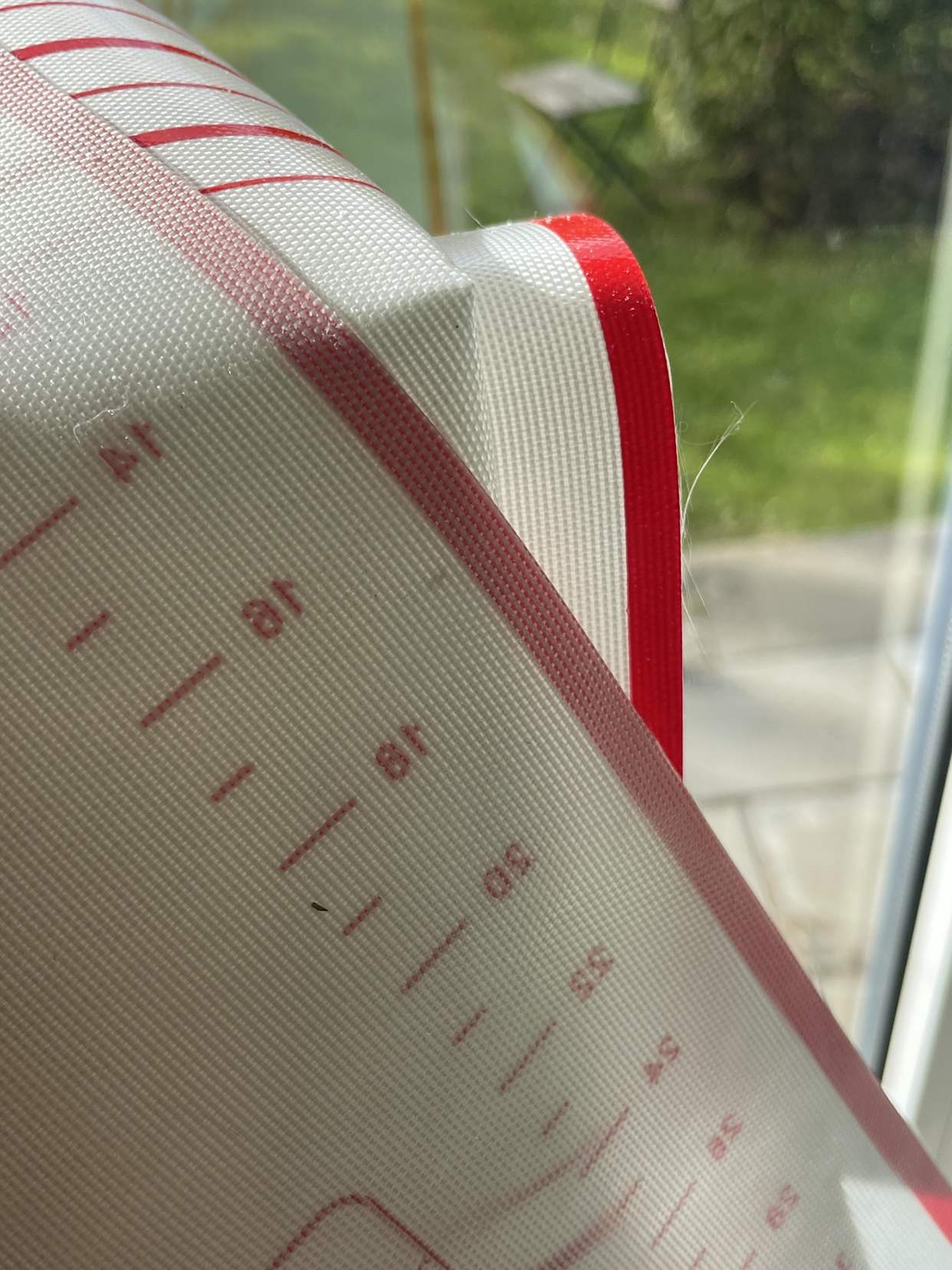 家里的硅胶揉面垫可以看看,背面是否带有清晰网格纹路,要是的话,用的时候可得多留个心眼,因为这里面是玻璃纤维做的支撑结构。