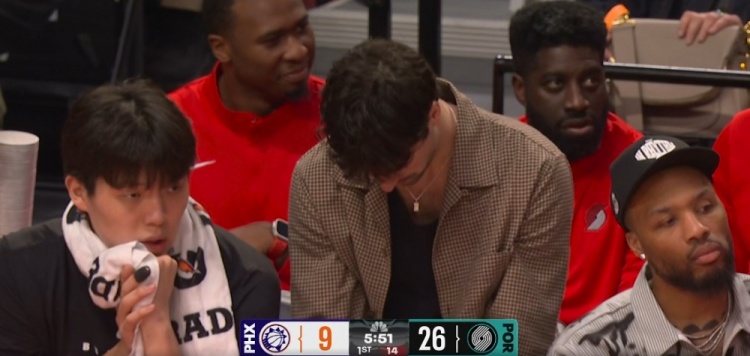开云体育入口-很专注!杨瀚森坐在场边阿夫迪亚身旁认真观战 球队大比分领先